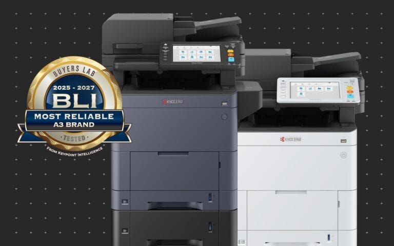 Kyocera was named BLI’s 2025-27 Most Reliable A3 Brand following five years of thorough testing. According to BLI – “In a controlled, conditioned lab environment, Kyocera devices consistently demonstrated exceptional reliability, achieving high volumes of impressions with remarkably low misfeed rates and no service calls. When compared with other devices, Kyocera’s office technology was found to perform more consistently and retain its quality for much longer. This award is a testament to the long-life components we use in product manufacturing and our commitment to excellence in the design process.”